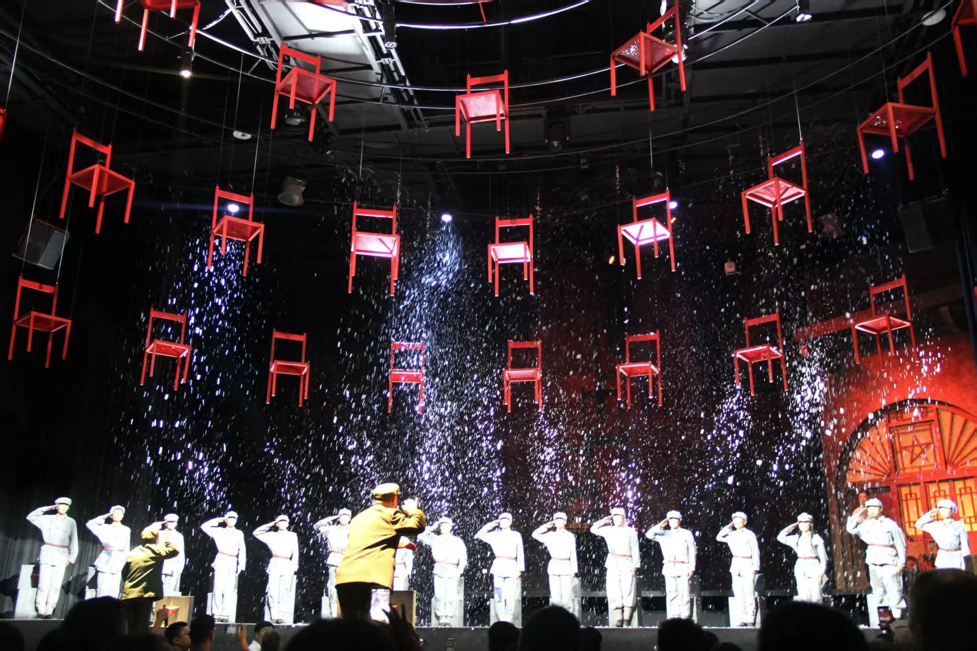 帶著南泥灣精神的震撼,團(tuán)隊(duì)移步紅街,走進(jìn)《再回延安》。全劇以劉寶順的長(zhǎng)征日記展開,通過(guò)“爺爺”的回憶,串聯(lián)起紅旗班戰(zhàn)友在雪山、草地、等場(chǎng)景中的生死情誼。劇中深刻融入的革命歌曲與陜北風(fēng)韻旋律,成為撼動(dòng)心靈的靈魂之聲。激昂的號(hào)角、深情的詠嘆,與戲劇張力交織,讓那段崢嶸歲月與不朽信仰直抵靈魂深處,展現(xiàn)了革命先輩的英勇事跡和不屈精神,讓隊(duì)員們深刻體會(huì)到《再回延安》不僅是一場(chǎng)視覺和聽覺的盛宴,更是一次心靈的洗禮!
