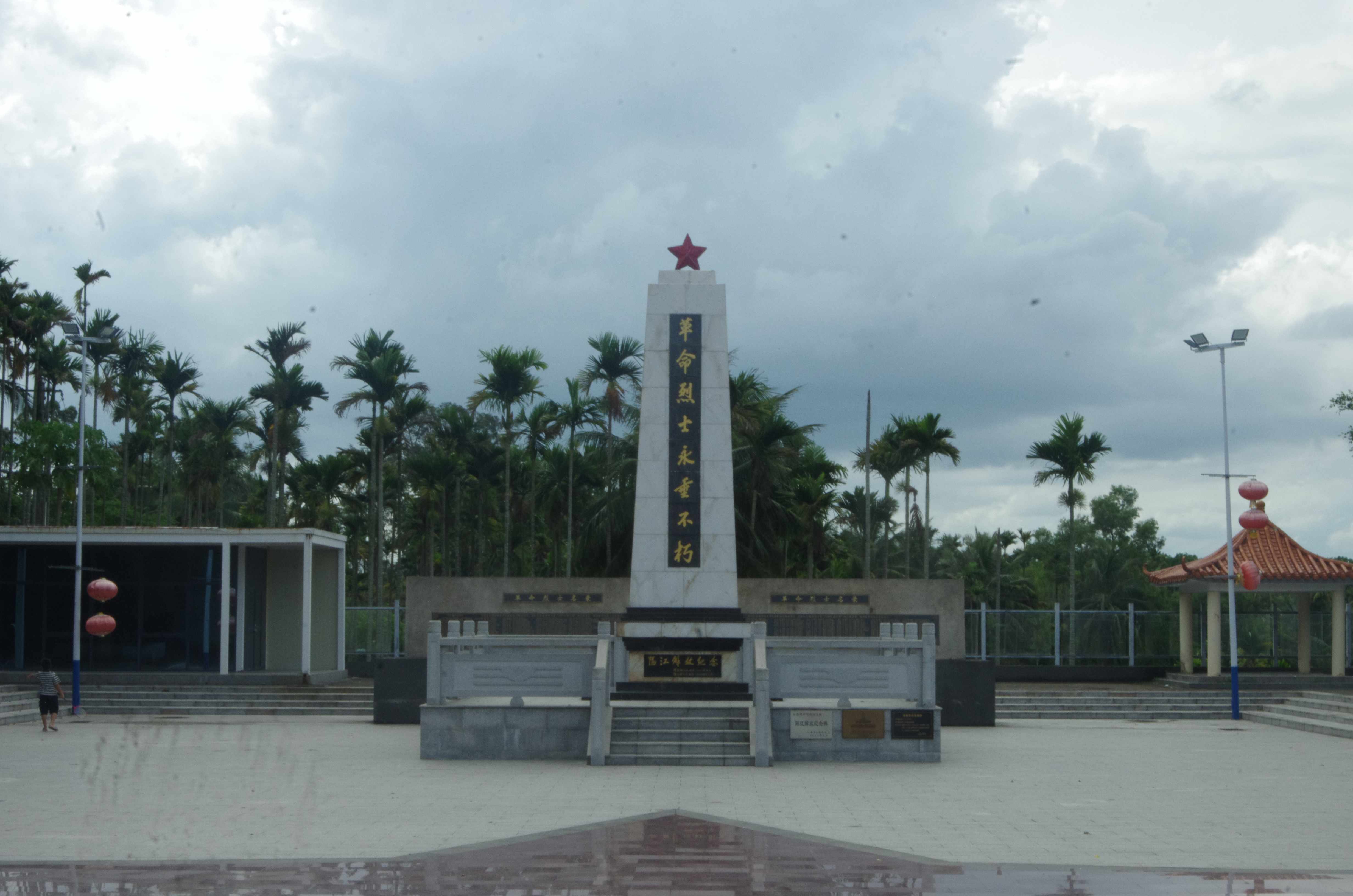 碑立山河,精神永駐 離開陽江鎮(zhèn)紅色娘子軍群像設(shè)立處,海椰志愿服務(wù)隊(duì)的隊(duì)員們來到了對面的陽江解放紀(jì)念碑。這座矗立在陽江鎮(zhèn)墟的紀(jì)念碑,莊嚴(yán)肅穆,正面鐫刻的“革命烈士永垂不朽”八個(gè)大字,在陽光下熠熠生輝,仿佛在向人們訴說著那段波瀾壯闊的革命歷史。