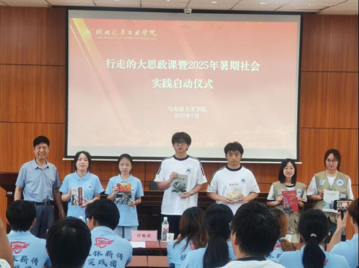 在全體師生見(jiàn)證下,姚尚明將一面承載著鐵道兵精神的隊(duì)旗授予“鐵脈薪傳”實(shí)踐隊(duì)。旗幟上的斑駁印記,仿佛在訴說(shuō)著往昔的崢嶸歲月。隊(duì)員們接過(guò)隊(duì)旗,目光堅(jiān)定,深知這既是榮譽(yù),更是傳承精神的使命。隨后,老先生向?qū)W生代表贈(zèng)予了自己編著的書(shū)籍,這些凝結(jié)著歷史記憶與創(chuàng)作心血的著作,成為珍貴的精神財(cái)富,現(xiàn)場(chǎng)響起經(jīng)久不息的掌聲,表達(dá)著對(duì)老先生的敬意與對(duì)鐵道兵精神的禮贊。