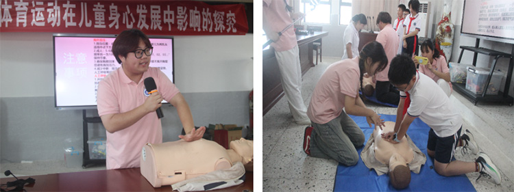 心肺復蘇(胸外按壓+人工呼吸) 在專業(yè)指導下,孩子們學習了基礎的心肺復蘇技能,包括如何判斷意識、正確按壓位置和頻率(30:2),以及人工呼吸的注意事項。通過模擬演練,孩子們初步掌握了這一重要的急救技能。