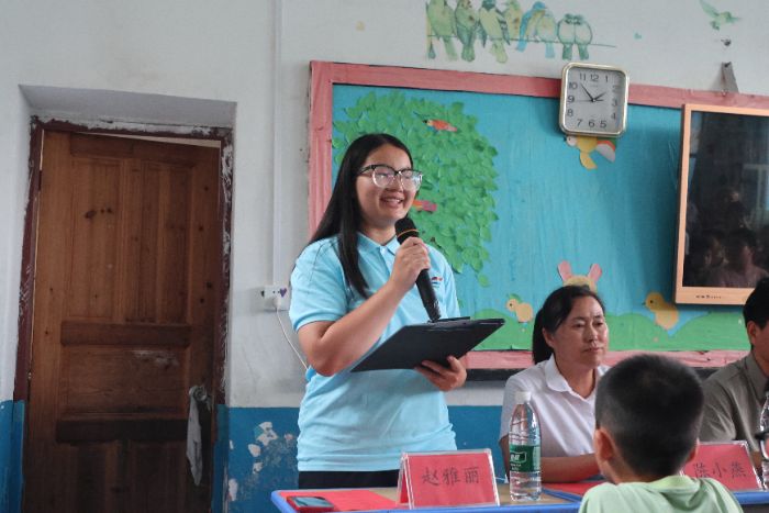 圖為河海大學(xué)紅色筑夢支教團(tuán)領(lǐng)隊(duì)趙雅麗同學(xué)發(fā)言