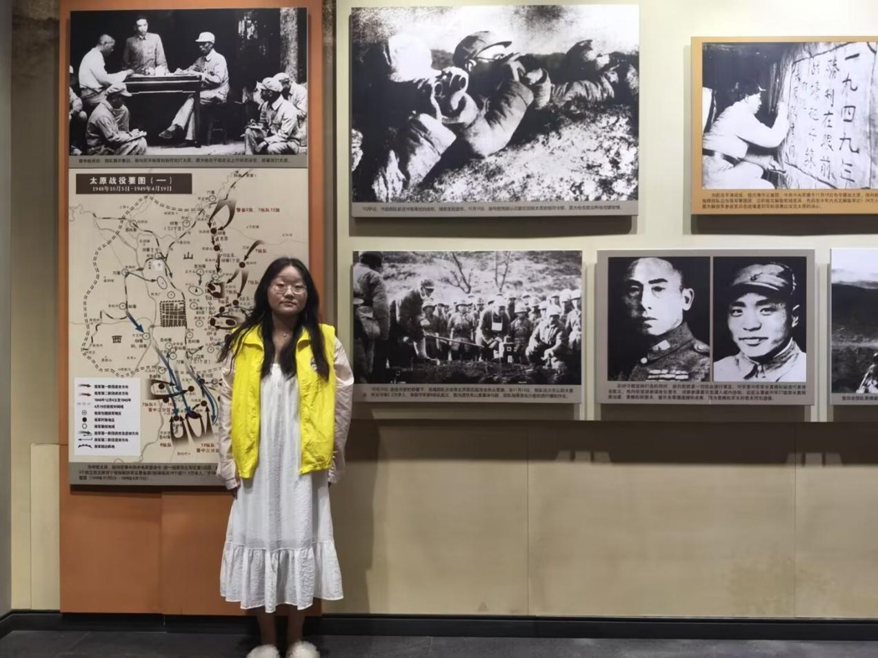 參館時,隊員們觀摩了諸多珍貴文物,這些物件作為歷史的見證,生動展現(xiàn)了革命先輩們在艱苦歲月中的卓越風(fēng)姿與人民群眾的堅韌不拔。其中,一張泛黃的軍用地圖尤為引人注目。這張地圖是徐向前元帥在太原指揮作戰(zhàn)時的關(guān)鍵物件,上面密密麻麻的標(biāo)注,彰顯了當(dāng)時戰(zhàn)略部署的精準(zhǔn)嚴(yán)密,更映照出當(dāng)?shù)厝嗣裨谖镔Y匱乏、環(huán)境惡劣的困境中堅守陣地、為革命勝利傾盡全力的頑強(qiáng)斗志,詮釋著艱苦奮斗的偉大精神。