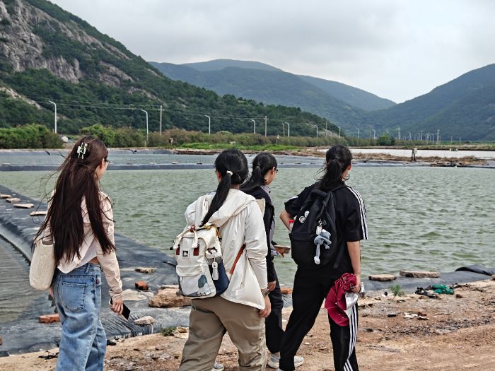 走進花岙鹽場,連片的鹽田在陽光下鋪展成晶瑩的畫卷。鹽田被規(guī)整地劃分成塊,鹵水在其中靜靜蒸發(fā),邊緣已凝結(jié)出細(xì)碎的鹽粒。小分隊成員們不禁為鹽場的規(guī)模所驚嘆著。“這一千多畝鹽田,只有40多位鹽農(nóng)在此生產(chǎn)工作,他們的工作量得多大啊!”小分隊成員汪同學(xué)感嘆道。小分隊成員們沿著鹽田邊緣緩緩行走,腳下的泥土散發(fā)著海水的咸香,仿佛能感受到千百年來鹽農(nóng)們在這片土地上辛勤耕耘的歷史。他們仔細(xì)觀察著鹽田的結(jié)構(gòu),探討著鹵水蒸發(fā)的原理,對曬鹽技藝有了更深刻的理解。在這片鹽田中,小分隊成員們不僅見證了曬鹽技藝的古老與智慧,更感受到了鹽農(nóng)們對傳統(tǒng)文化的堅守與傳承。這份感悟?qū)殡S著他們走出鹽田,成為他們心中永恒的印記。