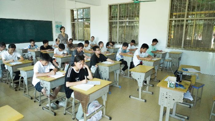 支教團(tuán)成員盧子浩向?qū)W生講解英語句子