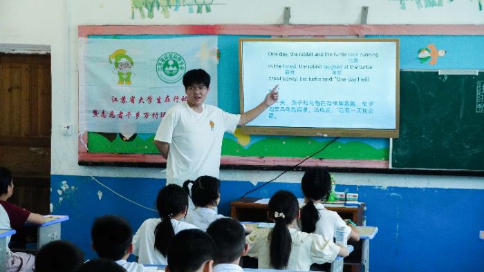 當(dāng)日課程中,英語教學(xué)扎實(shí)推進(jìn)。支教團(tuán)成員盧子浩在英語課上,以學(xué)生熟悉的《龜兔賽跑》寓言故事為載體,引導(dǎo)學(xué)生快速適應(yīng)英語版本,并融入新詞教學(xué),實(shí)現(xiàn)趣味與知識(shí)的結(jié)合。支教團(tuán)成員侯卓嵐則延續(xù)詞性教學(xué),聚焦情態(tài)動(dòng)詞與形容詞,通過生活情景模擬對(duì)話及句子填空練習(xí),幫助學(xué)生鞏固所學(xué),夯實(shí)語言基礎(chǔ)。