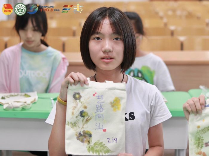 經(jīng)過一番努力,南澳的草木終于在孩子們的帆布袋上綻放出了別樣的光彩。鋸齒狀的蕨葉、星星點(diǎn)點(diǎn)的花瓣、錯(cuò)綜復(fù)雜的網(wǎng)狀葉脈,這些既是大自然賦予的獨(dú)特肌理,也是孩子們奇思妙想的體現(xiàn)。每一個(gè)帆布袋都成為了獨(dú)一無二的藝術(shù)品,承載著孩子們的快樂和對(duì)美的理解。