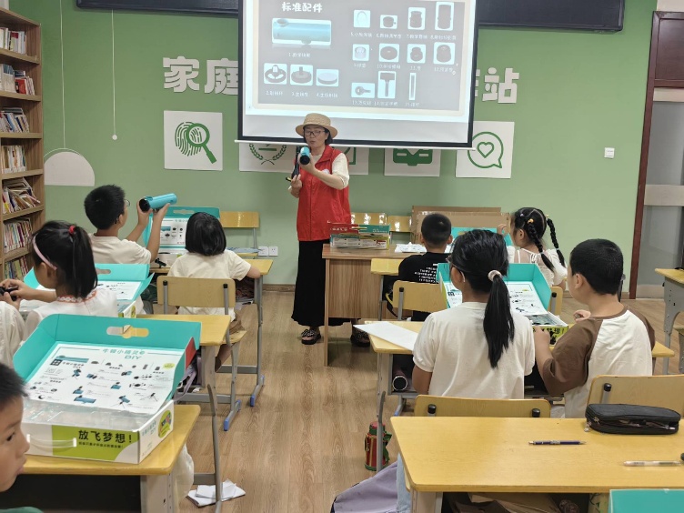 隨后的望遠(yuǎn)鏡觀察活動更是將氣氛推向高潮。志愿者們先進(jìn)行了望遠(yuǎn)鏡安裝示范,詳細(xì)講解每個部件的名稱和功能。孩子們圍在旁邊,伸長脖子仔細(xì)觀察。