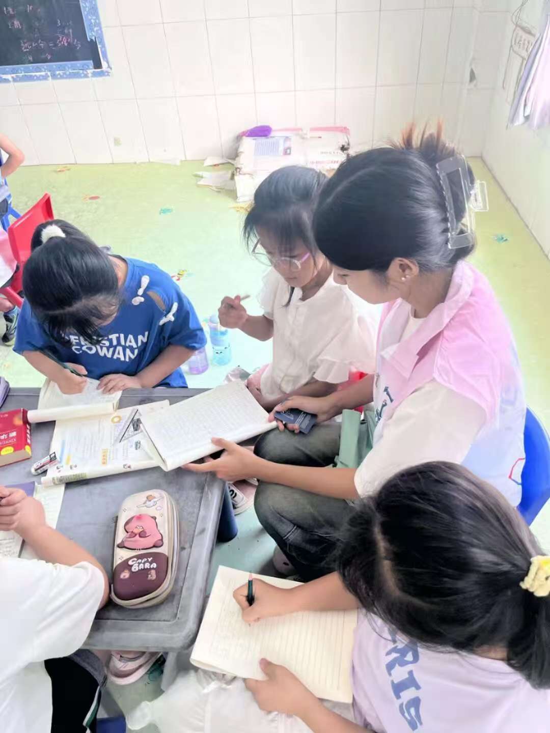 圖為志愿者輔導(dǎo)孩子們課業(yè)。 牟志璇 供圖