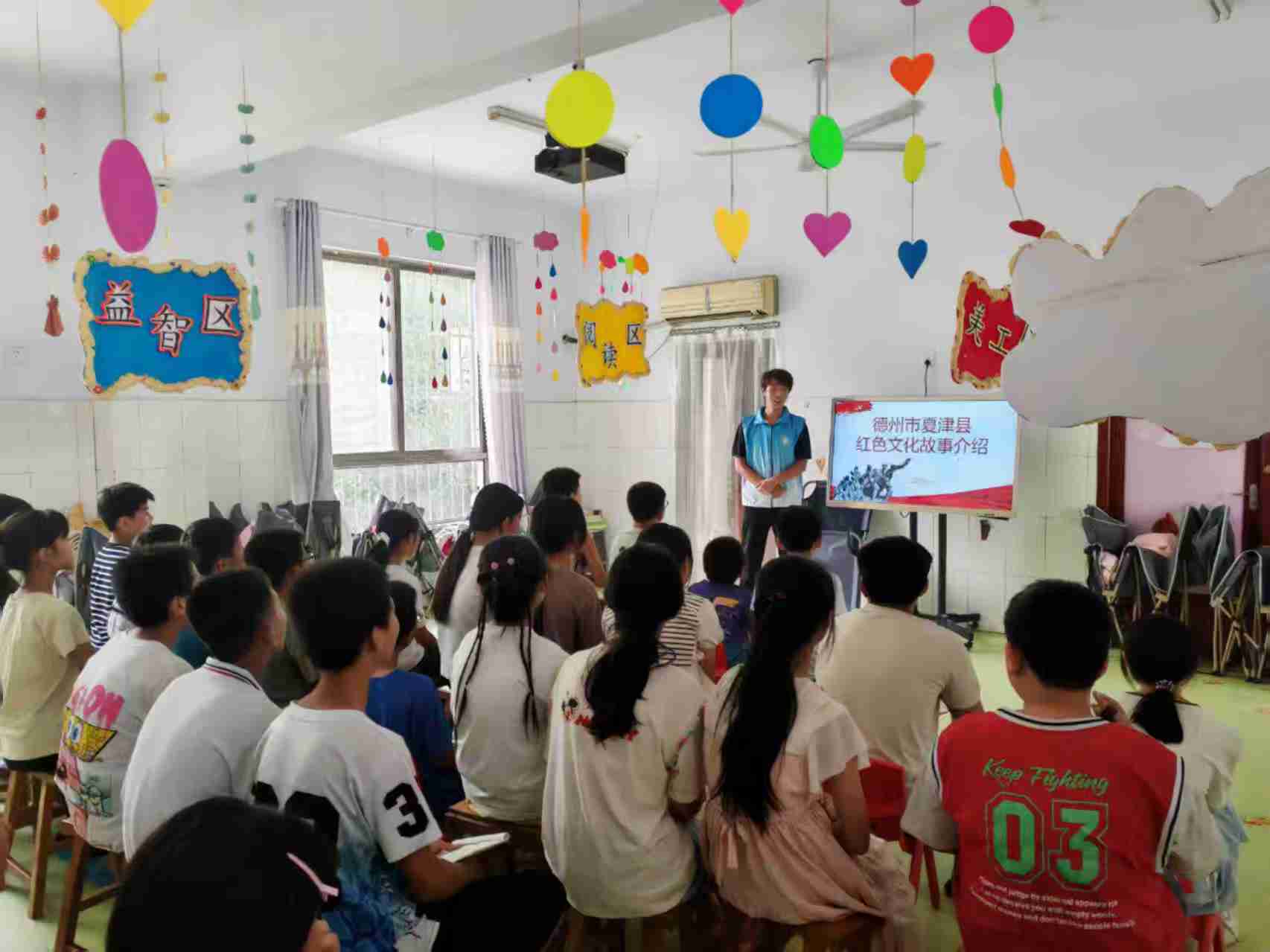 圖為志愿者為孩子們講解夏津縣當(dāng)?shù)丶t色文化故事。 通訊員 牟志璇 攝