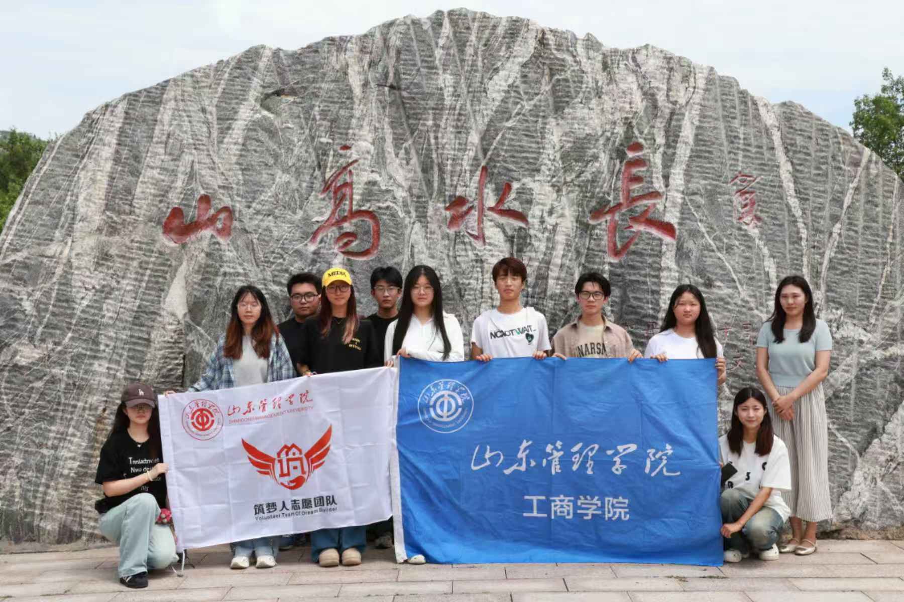 圖為山東管理學(xué)院筑夢(mèng)人志愿團(tuán)隊(duì)合照。 通訊員 牟志璇 攝