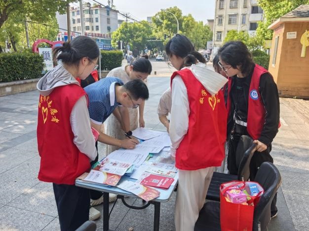 圖為巢湖學(xué)院"獻(xiàn)血賦能·健康調(diào)研”宣傳團(tuán)成員在巢湖市臥牛山街道北大街社區(qū)為居民發(fā)放調(diào)查問卷。曾悅 供圖