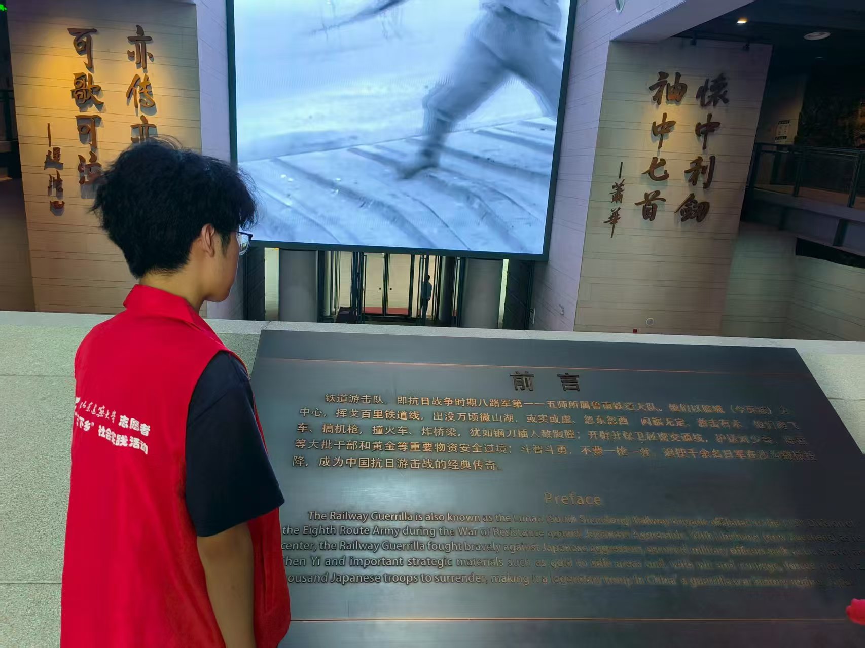 在鐵道游擊隊紀念館,隊員們通過參觀紀念館藏品、聆聽英雄事跡,深入了解鐵道游擊隊在抗日戰(zhàn)爭時期的英勇歷程,感受赤誠報國、不屈不撓、機智果敢的精神內涵?粗o念館展廳中的一幅幅珍貴圖片、一件件實物展品,聽著講解員的講解,隊員們仿佛體驗到了游擊隊員們爬火車、炸橋梁的英勇戰(zhàn)斗場景,深刻體會到了革命先輩為民族解放事業(yè)作出的犧牲與貢獻。