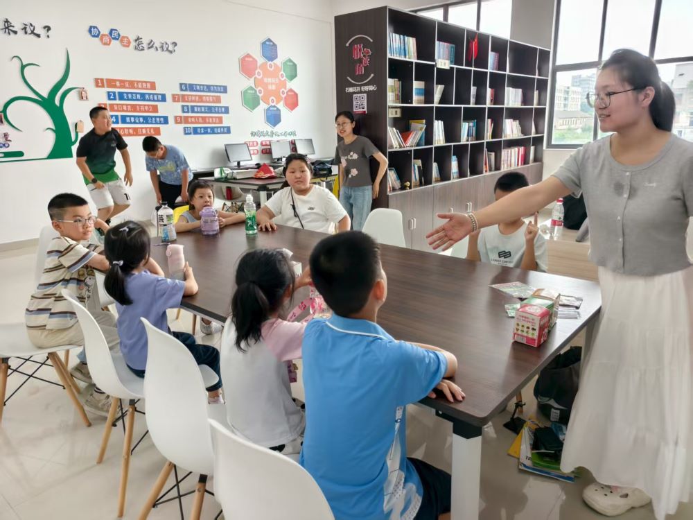 當(dāng)夏日的晨光灑滿亭湖區(qū)先鋒街道健康路社區(qū),活動室內(nèi)早已坐滿了翹首以盼的孩子。來自南京師范大學(xué)泰州學(xué)院紅心研墨團(tuán)隊(duì)的青年志愿者們,以一場精心設(shè)計(jì)的文化之旅開啟了當(dāng)日的活動。他們并非單向灌輸,而是以“李白詩歌賞析”為起點(diǎn),用鮮活的故事勾勒出詩仙“仗劍去國”的胸襟與傳奇。孩子們沉浸其中,爭相提問,課堂氛圍熱烈。一位小朋友在互動后感慨:“詩里的世界,比圖畫書還生動!”志愿者順勢引導(dǎo),將課堂巧妙過渡至繪本《井底之蛙》。色彩躍動的畫面甫一呈現(xiàn),便牢牢抓住了所有視線。面對孩子們“青蛙為何不跳出深井”的天真疑問,志愿者并未給出標(biāo)準(zhǔn)答案,而是鼓勵他們化身“小探險(xiǎn)家”,在對話與想象中自主尋覓故事的深意。知識探索的種子一旦播下,便需游戲之泉的澆灌。隨后的“搶板凳”與“逢7必過”環(huán)節(jié),讓活動室瞬間化為歡樂的海洋。孩子們在奔跑跳躍中釋放天性,更在緊張刺激的數(shù)字接力中鍛煉了思維與反應(yīng)。當(dāng)一個小男孩敏捷地跳過數(shù)字“14”并興奮高舉雙手時(shí),乘法口訣已悄然融入快樂的記憶。