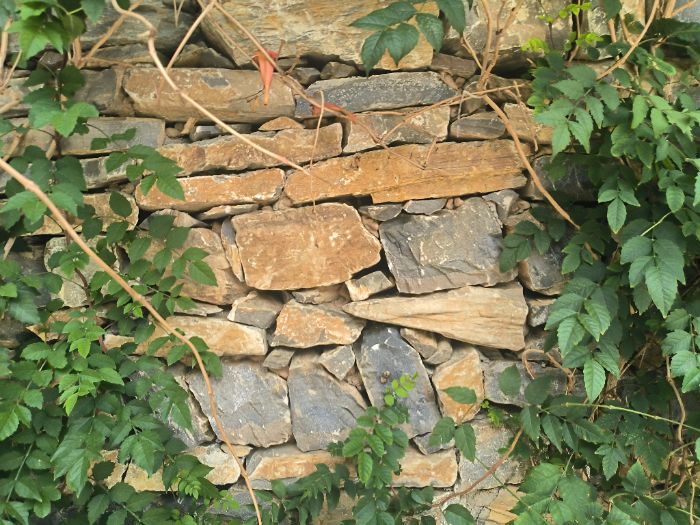 當(dāng)?shù)氐氖宸恳砸?guī)整的石條或不規(guī)則的石塊砌筑墻體,頂部覆蓋著層層疊疊的石板,青灰色的石板與山間的盎然綠意相映成趣。石板的良好隔熱性使房屋實(shí)現(xiàn)了“冬暖夏涼”的效果,而石材固有的耐久性則賦予了建筑防潮防火的特性。當(dāng)?shù)鼐用癖硎?ldquo;這些石頭都是從附近山上采的,不用走遠(yuǎn)路,省錢又結(jié)實(shí)”,工匠們將就地取材的石塊大小交錯(cuò)砌筑,縫隙間巧妙填充碎石,既節(jié)省了材料,又確保了墻體結(jié)構(gòu)的整體性與堅(jiān)固性。在驚嘆之余,隊(duì)員們?cè)敿?xì)記錄下這些石塊的砌筑肌理。