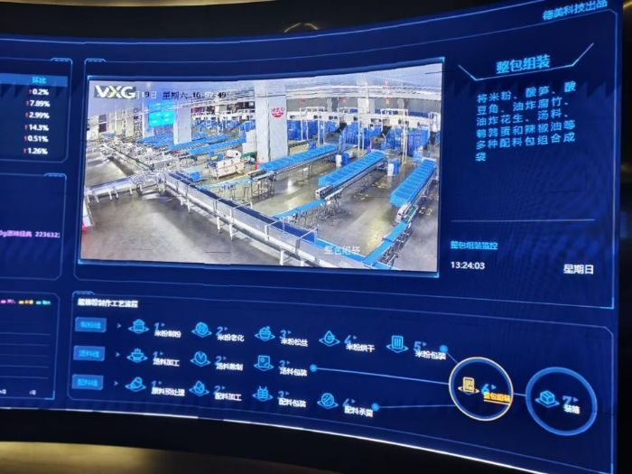 在螺霸王5G數(shù)字智能車間中,團(tuán)隊(duì)成員目睹了數(shù)字化賦能的震撼場(chǎng)景。巨大的電子屏幕上,關(guān)鍵數(shù)據(jù)實(shí)時(shí)跳動(dòng)、一目了然。屏幕上清晰展示著螺霸王產(chǎn)品在全國(guó)乃至全球不同區(qū)域的實(shí)時(shí)銷售排名,為市場(chǎng)營(yíng)銷提供即時(shí)的依據(jù)。各個(gè)生產(chǎn)車間的溫度、濕度等關(guān)鍵環(huán)境參數(shù)被傳感器持續(xù)采集,數(shù)值動(dòng)態(tài)更新,確保核心工藝環(huán)節(jié)始終處于最優(yōu)環(huán)境。屏幕上同步呈現(xiàn)多個(gè)關(guān)鍵工序的實(shí)時(shí)畫面,實(shí)現(xiàn)了生產(chǎn)全流程的“透明化”管理。