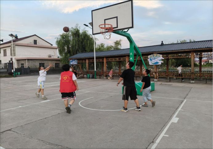 最先圍上來的是孩子們。小杰攥著個破了皮的乒乓球拍,眼睛盯著我們懷里的籃球,像只警惕又好奇的小獸。張奶奶挎著竹籃從菜地里回來,籃子里的黃瓜還掛著水珠,她往我們手里塞了兩根:“先墊墊,忙活完了到家里喝綠豆湯。”太陽漸漸爬高,把曬谷場曬得暖烘烘的,隊員們開始組裝器材,村民們前來幫忙,金屬碰撞的叮當(dāng)聲、老人的叮囑聲、孩子的嬉笑聲,混著稻浪翻滾的沙沙聲,織成了我們與港中坪的第一首協(xié)奏曲。