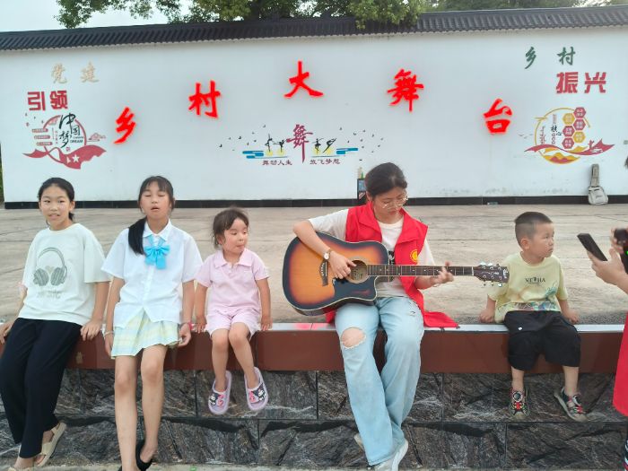 離別的前一夜,大家坐在曬谷場的鄉(xiāng)村大舞臺前聊天。欣欣說長大了想當(dāng)體育老師,張奶奶摸著欣欣的頭發(fā),她說:“想起自己年輕時也愛唱愛跳,后來忙著過日子,倒把這些忘了”。詩婷姐姐一邊彈吉他,一邊忽然哼起《少年中國說》的調(diào)子,我們跟著合唱,歌聲漫過稻田,驚起幾只晚歸的鳥。月光落在每個人臉上,那些白天里因運(yùn)動而發(fā)紅的臉頰、被汗水浸濕的衣衫,此刻都浸在溫柔里,像被時光細(xì)細(xì)打磨過的玉。