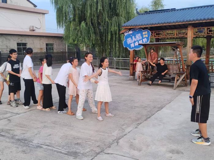 那天傍晚下了場陣雨,曬谷場積了水,我們正愁沒法活動,涵涵跑過來說:“可以玩老鷹捉小雞!”小朋友們自覺地跟在文玟姐姐后面,大人們也加入進(jìn)來,大家的笑聲圍繞著整個村子。