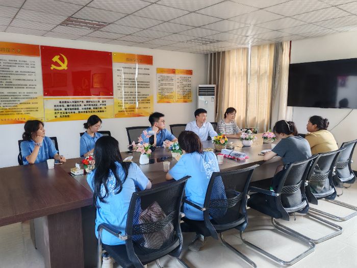 團(tuán)隊成員和負(fù)責(zé)人在會議室進(jìn)行思想交流 隨后,實踐隊走進(jìn)洛味緣農(nóng)產(chǎn)品加工企業(yè)。企業(yè)主營核桃、豆腐干等特色農(nóng)產(chǎn)品,雖品質(zhì)優(yōu)良,但因包裝簡陋、品牌知名度低,市場影響力受限。負(fù)責(zé)人介紹,2023 年曾嘗試草編筐包裝試銷,因缺乏線上推廣經(jīng)驗,效果不佳。實踐隊針對性提出 “非遺 + 文化” 包裝升級方案,建議融合草編工藝與倉頡造字元素,并協(xié)助拍攝 20 余組產(chǎn)品細(xì)節(jié)圖,為品牌推廣夯實基礎(chǔ)。