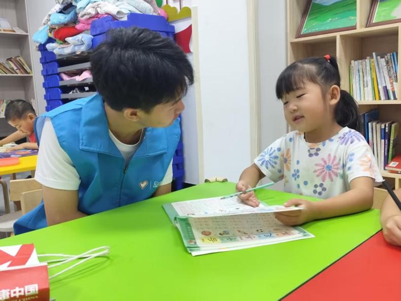傍晚,志愿者開啟課業(yè)答疑專場。針對小朋友們暑期作業(yè)一對一耐心答疑,從語文閱讀理解到數(shù)學(xué)運(yùn)算,細(xì)致講解解題思路,助力小朋友們汲取知識茁壯成長。同時(shí),志愿者鼓勵(lì)小朋友們分享學(xué)習(xí)心得,營造互幫互助氛圍。傳遞“成長路上有人幫、有人伴”的溫暖。