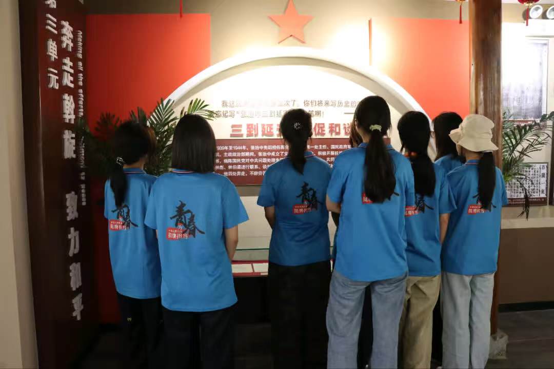 走進始建于1927年的故居,古樸的建筑格局與展陳史料還原著歷史現(xiàn)場。在講解員的介紹中,實踐團成員通過泛黃的歷史照片、舊物展柜與文獻史料,了解張治中將軍從寒門學(xué)子到北伐名將的歷程:他參與淞滬抗戰(zhàn)、主政新疆,更以外御強敵、內(nèi)求和平的信念為國內(nèi)和平奔走,其捐資創(chuàng)辦黃麓師范學(xué)校的義舉,彰顯教育救國的遠見。故居內(nèi)的陳設(shè)與文字,讓青年學(xué)子直觀感受其愛國情懷與追求和平的畢生追求。