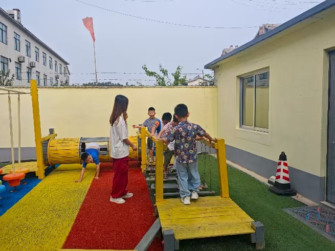 活動(dòng)當(dāng)天的幼兒園變成了歡樂的海洋。操場上,志愿者選取活潑的童謠旋律,編排了簡單易學(xué)的肢體律動(dòng)。孩子們跟著節(jié)奏擺動(dòng)身體,雖然動(dòng)作稚嫩卻充滿活力,銀鈴般的笑聲灑滿房間。“看到孩子們用肢體表達(dá)喜悅,突然明白教育可以這么生動(dòng)。”一位志愿者在活動(dòng)日志中寫道。戶外場地被改造成“小小挑戰(zhàn)營”。志愿者利用滑梯、平衡木等設(shè)施設(shè)計(jì)闖關(guān)游戲,鼓勵(lì)孩子們突破自我。起初面對平衡木時(shí),5歲的小雨緊緊抓著志愿者的手不敢邁步,在同伴“加油”聲中,她終于試探著走完了全程,撲進(jìn)老師懷里大喊:“我做到啦!”這類活動(dòng)不僅增強(qiáng)了孩子們的體能,更讓他們學(xué)會(huì)了勇敢與互助。