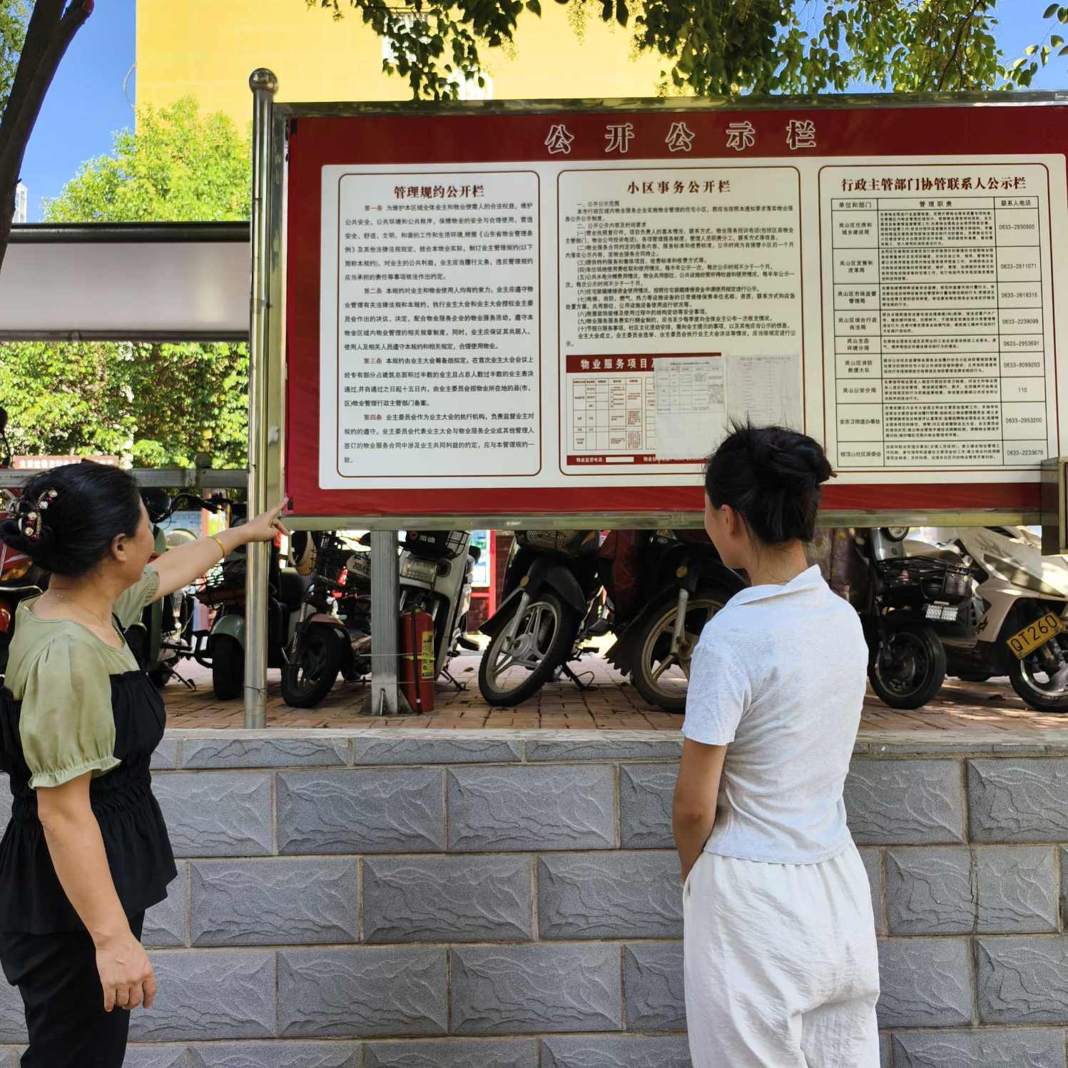 圖2 日照市嵐山區(qū)阿掖山花園社區(qū)干部向隊(duì)員介紹公示欄情況