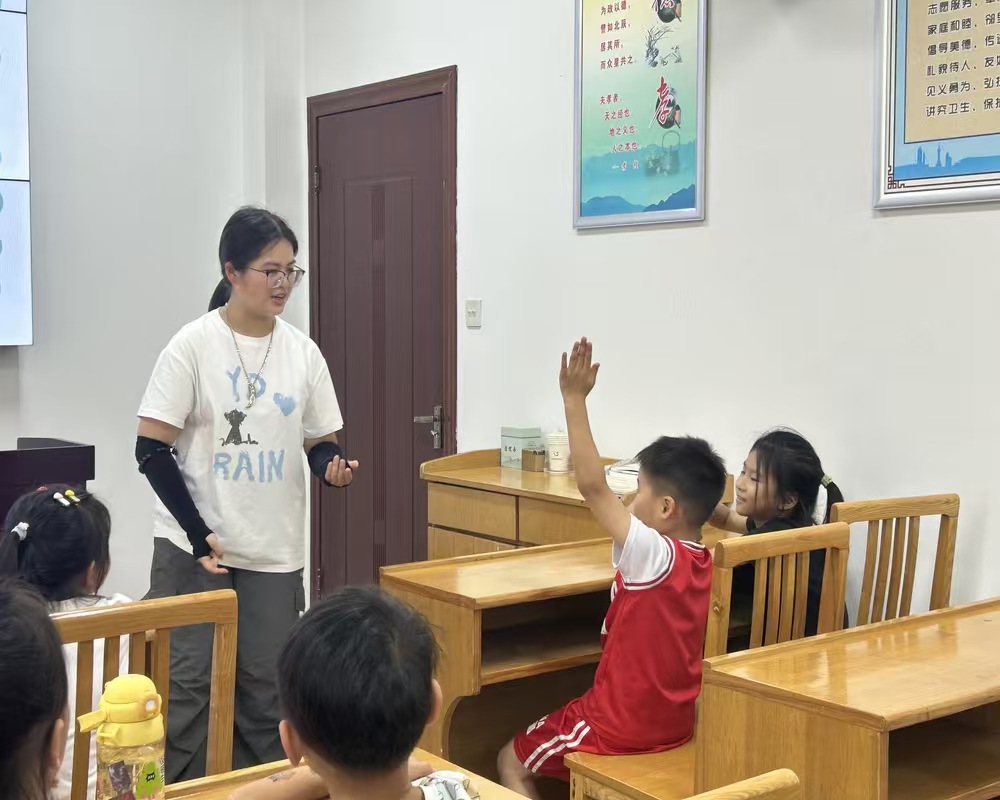 2025年7月18日,南京師范大學(xué)泰州學(xué)院“紅心研墨”暑期社會(huì)實(shí)踐團(tuán)隊(duì)在泰州美東安社區(qū)開(kāi)啟英文主題實(shí)踐活動(dòng)。作為團(tuán)隊(duì)暑期實(shí)踐關(guān)鍵一環(huán),活動(dòng)緊扣“游戲化學(xué)習(xí),趣味學(xué)英文”理念,把知識(shí)融入互動(dòng),助力兒童輕松開(kāi)啟英語(yǔ)學(xué)習(xí)之旅。課前精備,筑牢趣味基石活動(dòng)前,團(tuán)隊(duì)針對(duì)社區(qū)兒童特點(diǎn)系統(tǒng)籌備。組織志愿者培訓(xùn),明確游戲化教學(xué)流程與分工,重點(diǎn)打磨英文兒歌領(lǐng)唱、詞匯游戲引導(dǎo)等環(huán)節(jié)的細(xì)節(jié);檢查社區(qū)場(chǎng)地音響、投影儀等設(shè)備,確保教學(xué)工具正常運(yùn)行;準(zhǔn)備單詞卡片、卡通道具及積分小獎(jiǎng)品,為互動(dòng)環(huán)節(jié)提供充足支撐,讓教學(xué)過(guò)程既有趣味性又具條理性。游戲串聯(lián),激活語(yǔ)言感知活動(dòng)開(kāi)場(chǎng),志愿者帶領(lǐng)孩子們唱響《Baby Shark》等英文兒歌,搭配拍手、跺腳等肢體動(dòng)作,借助旋律幫助記憶單詞。隨后進(jìn)入“詞匯大冒險(xiǎn)”游戲,用卡片展示動(dòng)物、水果等主題詞匯,孩子們猜對(duì)即可“闖關(guān)”,若有失誤,志愿者便通過(guò)趣味動(dòng)作、擬聲詞重新講解,例如學(xué)習(xí)“tiger”時(shí)模仿老虎吼叫,讓詞匯記憶過(guò)程輕松高效。(圖為志愿者在為小朋友們講解)“情景小劇場(chǎng)”環(huán)節(jié)中,志愿者設(shè)定“餐廳點(diǎn)餐”“超市購(gòu)物”等生活場(chǎng)景,引導(dǎo)孩子們分組進(jìn)行簡(jiǎn)單英文對(duì)話(huà)。從“Can I help you?”到“I’d like an apple.”,孩子們?cè)谀M場(chǎng)景中練習(xí)口語(yǔ),逐漸從羞澀拘謹(jǐn)變得主動(dòng)參與,表達(dá)也愈發(fā)流暢。(圖為志愿者聽(tīng)小朋友回答)雙向成長(zhǎng),蓄力未來(lái)教育志愿者們表示,看到孩子們從不敢開(kāi)口到主動(dòng)展示,深刻體會(huì)到游戲化教學(xué)的感染力。此次實(shí)踐不僅提升了自身的溝通與課堂把控能力,更讓大家明白教育需貼合兒童天性。孩子們也反饋,英文學(xué)習(xí)變得像玩游戲一樣有趣,十分期待再次參與。對(duì)團(tuán)隊(duì)而言,活動(dòng)驗(yàn)證了游戲化教學(xué)的可行性,但也暴露出宣傳覆蓋面不足、部分環(huán)節(jié)時(shí)間把控不夠精準(zhǔn)等問(wèn)題。未來(lái),團(tuán)隊(duì)計(jì)劃擴(kuò)大線上宣傳范圍,優(yōu)化環(huán)節(jié)時(shí)長(zhǎng),讓英文趣味課堂走進(jìn)更多社區(qū),以青春力量點(diǎn)燃兒童英語(yǔ)學(xué)習(xí)熱情,助力傳統(tǒng)文化與外語(yǔ)教育融合,讓暑期實(shí)踐持續(xù)發(fā)光發(fā)熱。