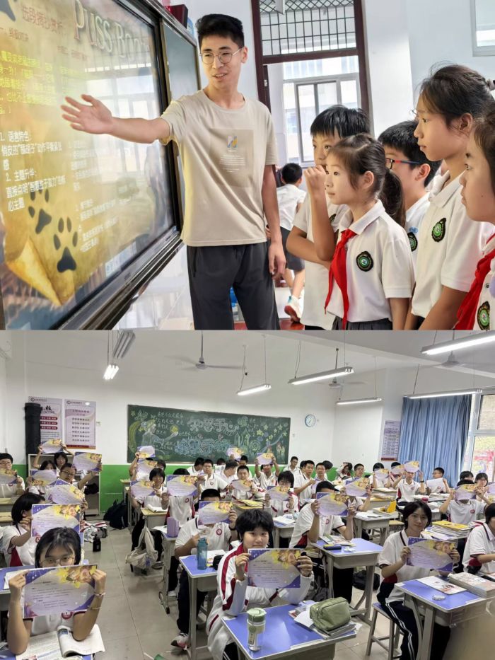 南京校園里的閱讀火種,很快隨實踐團成員的腳步蔓延至全國。在山東東營勝利花苑學(xué)校,趙明洋同學(xué)帶著《穿靴子的貓》與孩子們共讀,引導(dǎo)觀察插圖細(xì)節(jié)、討論故事情節(jié),讓課堂成為感受書籍魅力的樂園;河北邯鄲叢臺實驗學(xué)校內(nèi),馮柯佳同學(xué)以《小王子》為紐帶,從創(chuàng)作背景引入,鼓勵孩子們分享閱讀感受,讓 “書韻筑夢” 的力量在互動中傳遞。