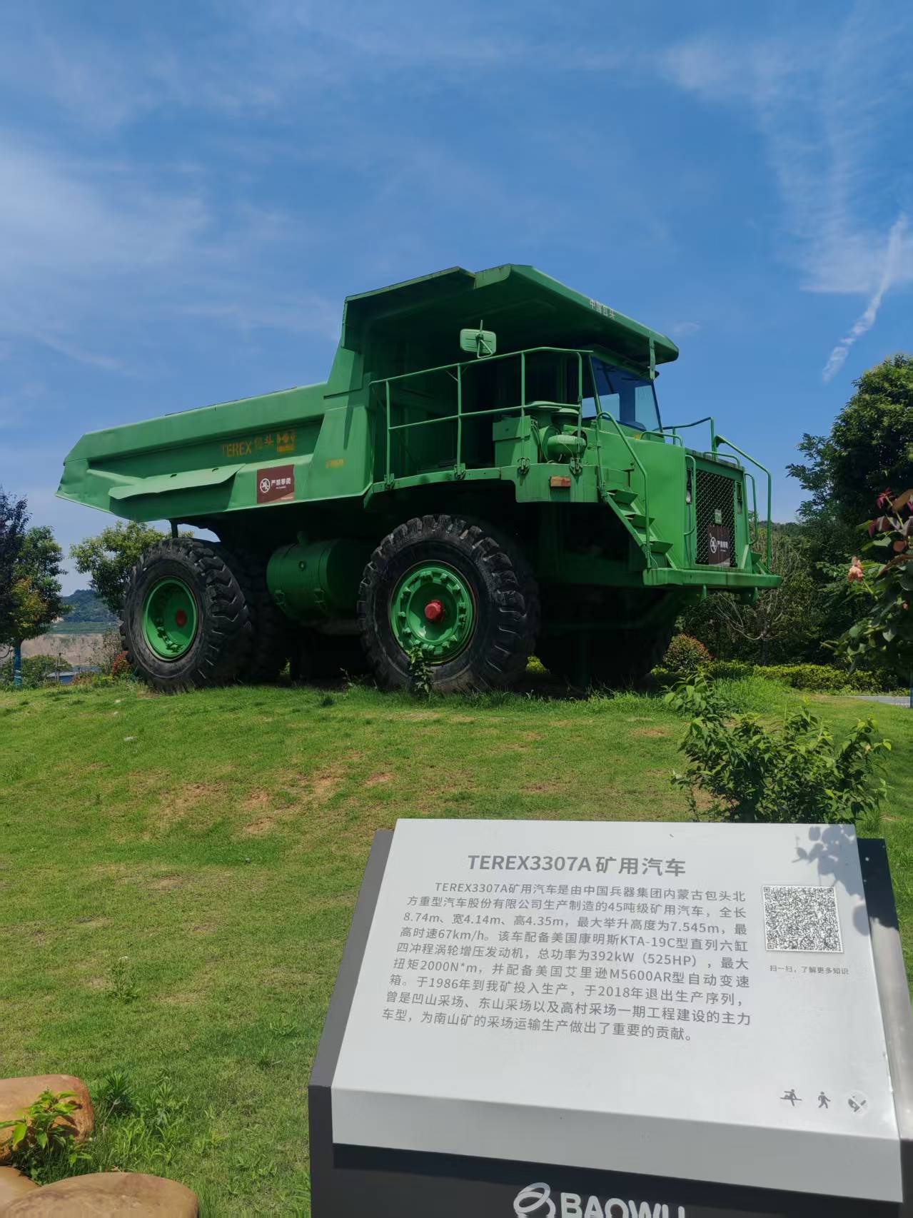 那輛巍然佇立的TEREX3307A礦用汽車(chē),更是工業(yè)遺產(chǎn)的“活化石”。它由中國(guó)兵器集團(tuán)內(nèi)蒙古包頭北方重型汽車(chē)股份有限公司制造,長(zhǎng)達(dá)8.74米、寬4.14米、高4.35米的龐大身軀,曾是凹山采場(chǎng)等工程建設(shè)的 “主力軍”。1988年投入生產(chǎn),2018年退役,近三十年的服役生涯,它見(jiàn)證了礦山開(kāi)采的繁忙與艱辛,也承載著一代產(chǎn)業(yè)工人的青春與熱血。撫摸車(chē)身的斑駁綠漆,仿佛能聽(tīng)見(jiàn)往昔機(jī)器轟鳴、車(chē)輪滾動(dòng)的聲響,那是屬于工業(yè)時(shí)代的奮斗旋律。