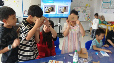 到了紙板VR眼鏡的制作環(huán)節(jié),更是點燃了孩子們的探索熱情。隊員講解完原理,10歲的小航迫不及待提問:“戴上它真的能看到不一樣的世界嗎?像魔法電影一樣!”當(dāng)拿到硬紙板、鏡片等材料,孩子們紛紛動手,裁剪、粘貼時格外專注。