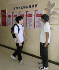 圖為隊(duì)員講解和學(xué)習(xí)標(biāo)語內(nèi)容。周明杰攝