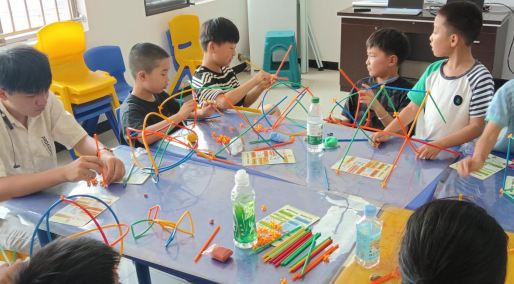 圖為小朋友們開(kāi)始使用吸管玩具來(lái)搭建作品。周明杰攝