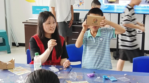 圖為小朋友佩戴使用制作完成的VR眼鏡。周明杰攝