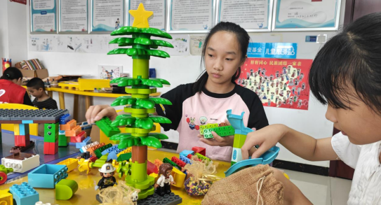 圖為小朋友們開(kāi)始選擇積木搭建作品。梁柯攝