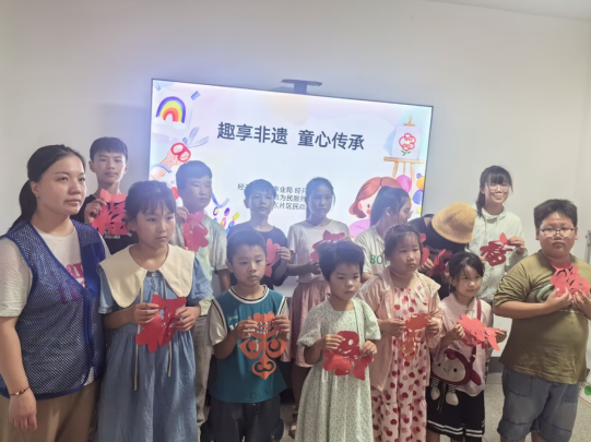 童聲話傳承:文化種子的破土之聲 "原來剪刀能剪出會(huì)飛的童話!"分享環(huán)節(jié),小宇握著作品的手還在微微發(fā)抖。曉萱則靦腆地展示"胖頭魚"剪紙:"我現(xiàn)在知道,剪紙不是照著畫,是要把心里的話變成花紋。"這些稚嫩的感悟,讓實(shí)踐團(tuán)隊(duì)成員眼眶發(fā)熱——他們準(zhǔn)備的教案里寫滿知識(shí)要點(diǎn),卻沒想到孩子們用最本真的方式,觸摸到了非遺傳承的核心。