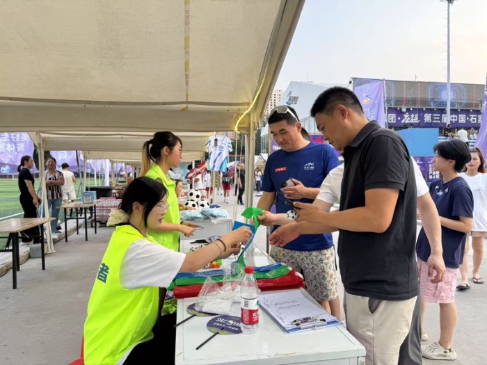 賽中,團(tuán)隊(duì)按每日賽事安排分組開展服務(wù):一組擔(dān)任“球童”,及時(shí)傳遞出界足球,保障比賽節(jié)奏;二組負(fù)責(zé)后勤保障,提供補(bǔ)給物資并協(xié)助醫(yī)護(hù)人員做好擔(dān)架、冰敷等應(yīng)急準(zhǔn)備;三組協(xié)助球員整理、傳遞隊(duì)服,確?焖贀Q裝登場(chǎng);四組專注賽事記錄,精準(zhǔn)統(tǒng)計(jì)比分、球員表現(xiàn)等數(shù)據(jù),同時(shí)收集精彩素材、協(xié)助裁判記錄。期間還特別開設(shè)“綠茵文化角”,通過趣味互動(dòng)普及賽事歷史與足球知識(shí),為外來(lái)隊(duì)伍提供石家莊文旅小貼士和石家莊特色美食。