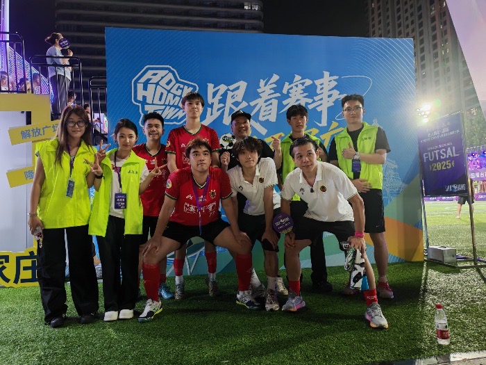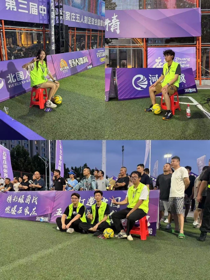 在第三屆中國(guó)石家莊五人制足球賽全國(guó)擂臺(tái)賽期間(6月28日、6月29日,7月5日、7月6日、7月12日、7月13日、7月19日、7月20日、7月26日、7月27日、8月2日、8月3日),先后迎來(lái)石家莊華爾道夫、福建廈門桃李春風(fēng)、吉林長(zhǎng)春順興、香港栢禧等多支隊(duì)伍同臺(tái)競(jìng)技,賽事歷時(shí)12天,涵蓋19場(chǎng)精彩對(duì)決,既展現(xiàn)了五人制足球的靈動(dòng)與激情,也為各地球隊(duì)搭建了交流切磋的平臺(tái)。“綠茵先鋒踐行隊(duì)”深度參與賽事全流程保障,以專業(yè)態(tài)度和細(xì)致行動(dòng),為這場(chǎng)體育盛會(huì)注入溫暖力量。