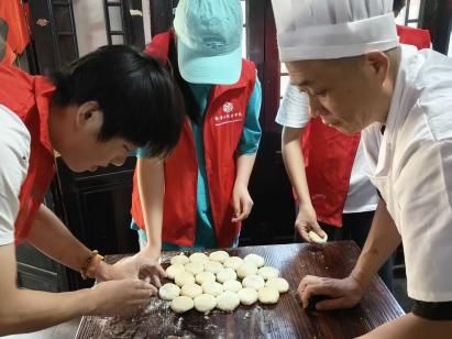 圖為非遺傳承人指導(dǎo)實(shí)踐團(tuán)成員制作黃橋燒餅(數(shù)學(xué)與統(tǒng)計(jì)學(xué)院 郭語(yǔ)曈供圖)