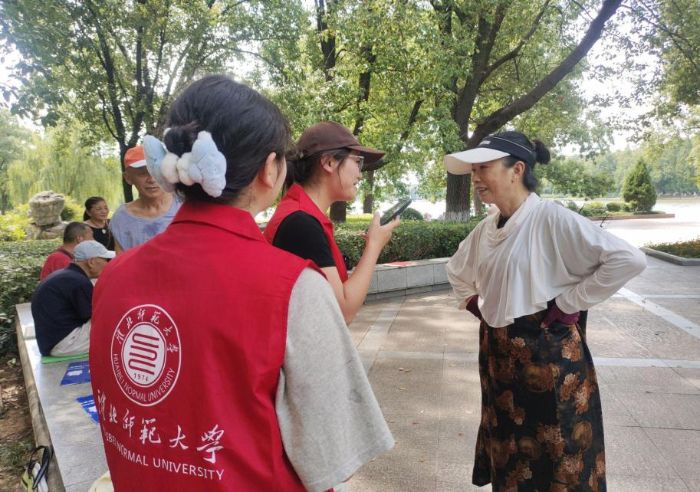 圖為實踐團隊在蓮湖公園開展文化宣傳活動(數學與統(tǒng)計學院 鄧雨歆 供圖)