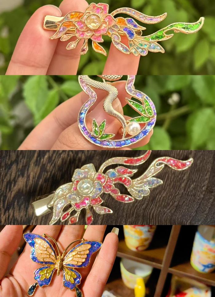 圖為團(tuán)隊(duì)成員螺鈿手作品成果的部分展示