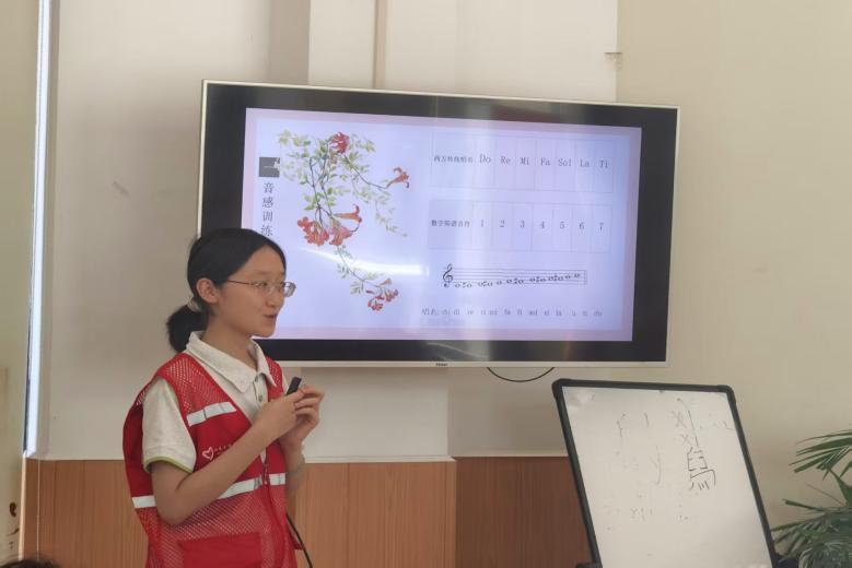 弦歌不輟,音樂(lè)課堂綻笑顏 午后的陽(yáng)光透過(guò)窗欞,在課桌上投下細(xì)碎的光斑,音樂(lè)課成了最動(dòng)人的篇章。支教隊(duì)員按動(dòng)播放鍵,一段輕快的旋律便漫了開(kāi)來(lái):“今天我們學(xué)一首新的《快樂(lè)拍手歌》,不過(guò)歌詞要改改——把你們喜歡的事、身邊的人都編進(jìn)去好不好?”