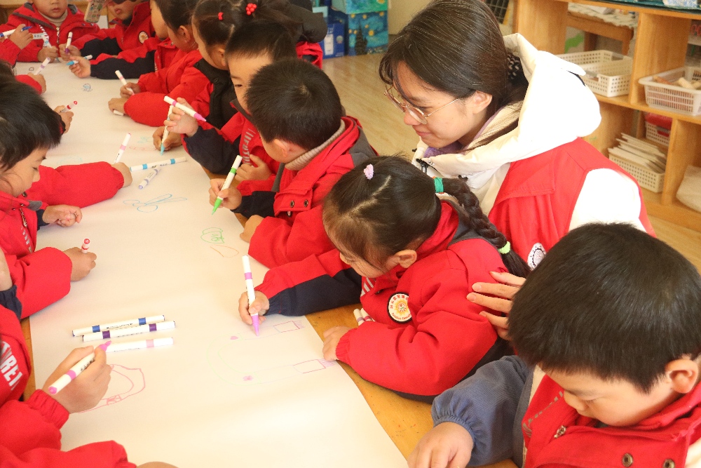 志愿者展示不同顏色和樣式的圍巾樣品,引導幼兒觀察形狀、顏色和花紋。對幼兒提問:“如果你有一條圍巾,它會是什么樣子?”激發(fā)幼兒興趣,引導幼兒畫出自己心中的圍巾。