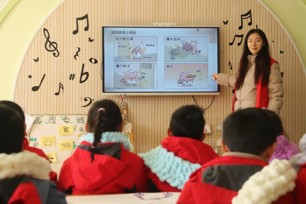 開展“毛線科普課”,將靜電原理融入編織游戲。在現場給幼兒普及什么是靜電,什么環(huán)境下會觸碰靜電,以及一些預防靜電的小妙招。