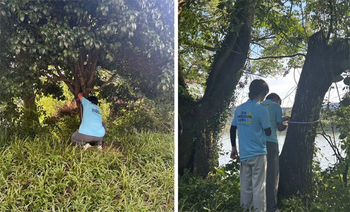 相比于調(diào)查活動(dòng)的嚴(yán)謹(jǐn),“金屋”團(tuán)隊(duì)作為實(shí)踐團(tuán)的前輩則格外顯示人文關(guān)懷,對(duì)于實(shí)踐團(tuán)成員不懂的問題,“金屋”團(tuán)隊(duì)的各位都會(huì)悉心解答,并都親自帶領(lǐng)實(shí)踐團(tuán)進(jìn)行數(shù)據(jù)測量與記錄,調(diào)查的嚴(yán)謹(jǐn)與前輩的關(guān)懷在此交融,實(shí)踐團(tuán)的各位都理解了樣地調(diào)查的方法以及學(xué)會(huì)了很多處理特殊情況的方法同時(shí)在調(diào)查過程中再次對(duì)古樹名木的保護(hù)有新的認(rèn)識(shí)。