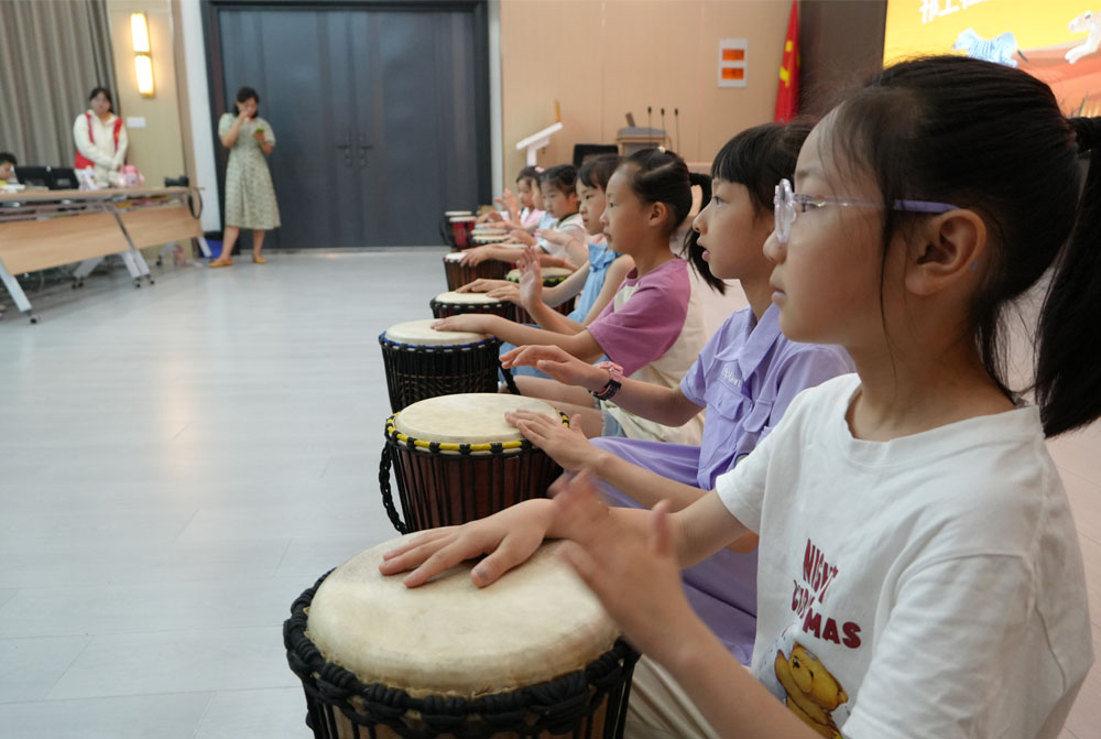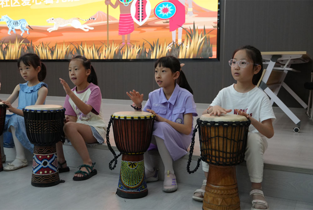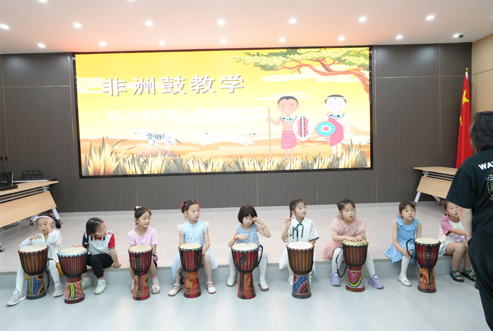 炎炎夏日,蟬鳴不止,隨著暑假的開始,為了豐富孩子們暑期生活,南京師范大學(xué)泰州學(xué)院紅心研墨團(tuán)隊(duì)走進(jìn)揚(yáng)州邗江社區(qū)將精彩的非洲鼓教育課程呈現(xiàn)給每一個(gè)孩子們。第三期課程為非洲鼓課程,非洲鼓又稱非洲手鼓,起源于非洲大陸,是非洲音樂文化中不可或缺的樂器之一。它歷史悠久可以追溯到公元前500年左右。非洲鼓不僅是一種樂器,更是非洲人民生活的一部分,承載著非洲大陸豐富的文化內(nèi)涵和歷史傳承。學(xué)習(xí)它是音樂藝術(shù)熏陶的重要方式。