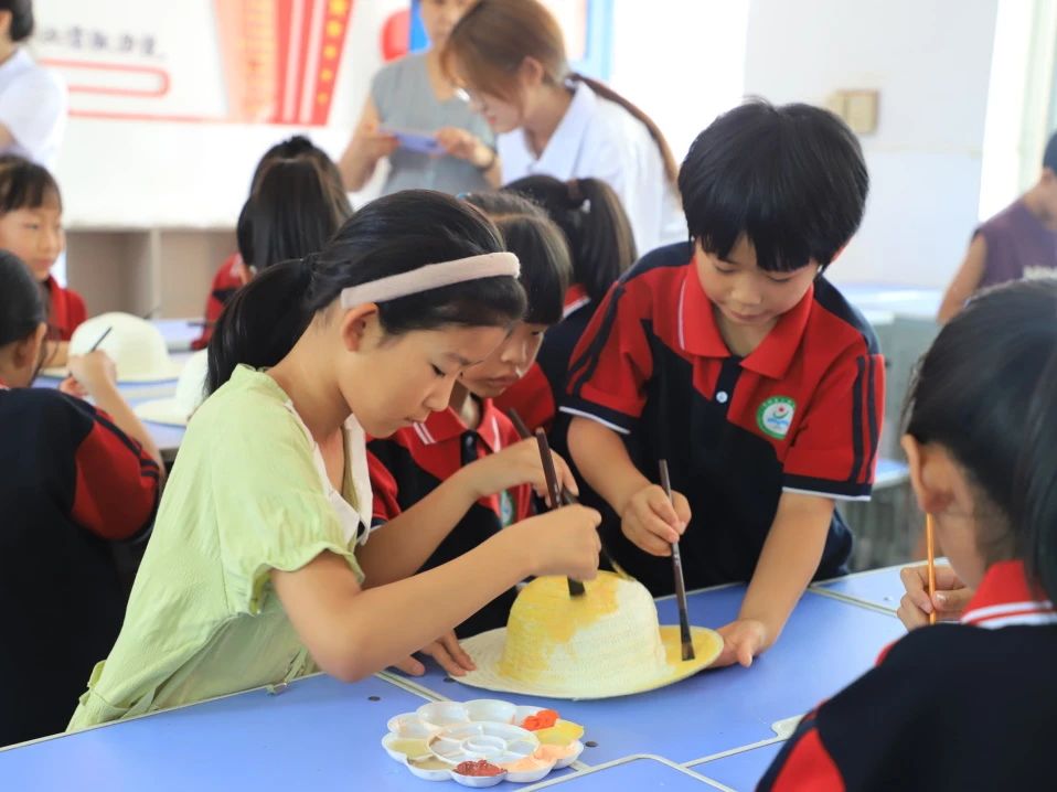 以草為思,以帽為憶。一頂百搭的草帽,一支簡(jiǎn)單的畫筆。王可欣、陳賀伽、曹梓涵等“小老師們”帶來了DIY草帽課程。通過觀看視頻,小朋友們了解了草帽的制作過程,隨后“小老師們”為大家發(fā)放繪畫工具、草帽,并詳細(xì)介紹草帽的繪制步驟、色彩搭配技巧及注意事項(xiàng)。小朋友們充分發(fā)揮想象力,在草帽上畫出自己喜歡的圖案,一頂頂草帽在孩子們的創(chuàng)作下成為獨(dú)一無二的風(fēng)景。