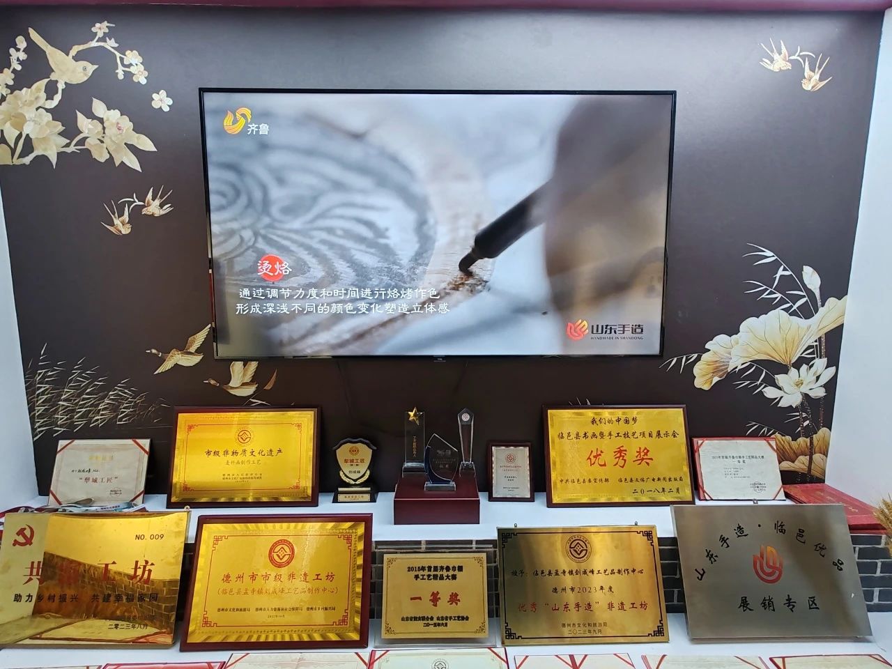 圖為孟寺鎮(zhèn)“山東手造”非遺工坊所獲榮譽山東政法學院寧豈攝