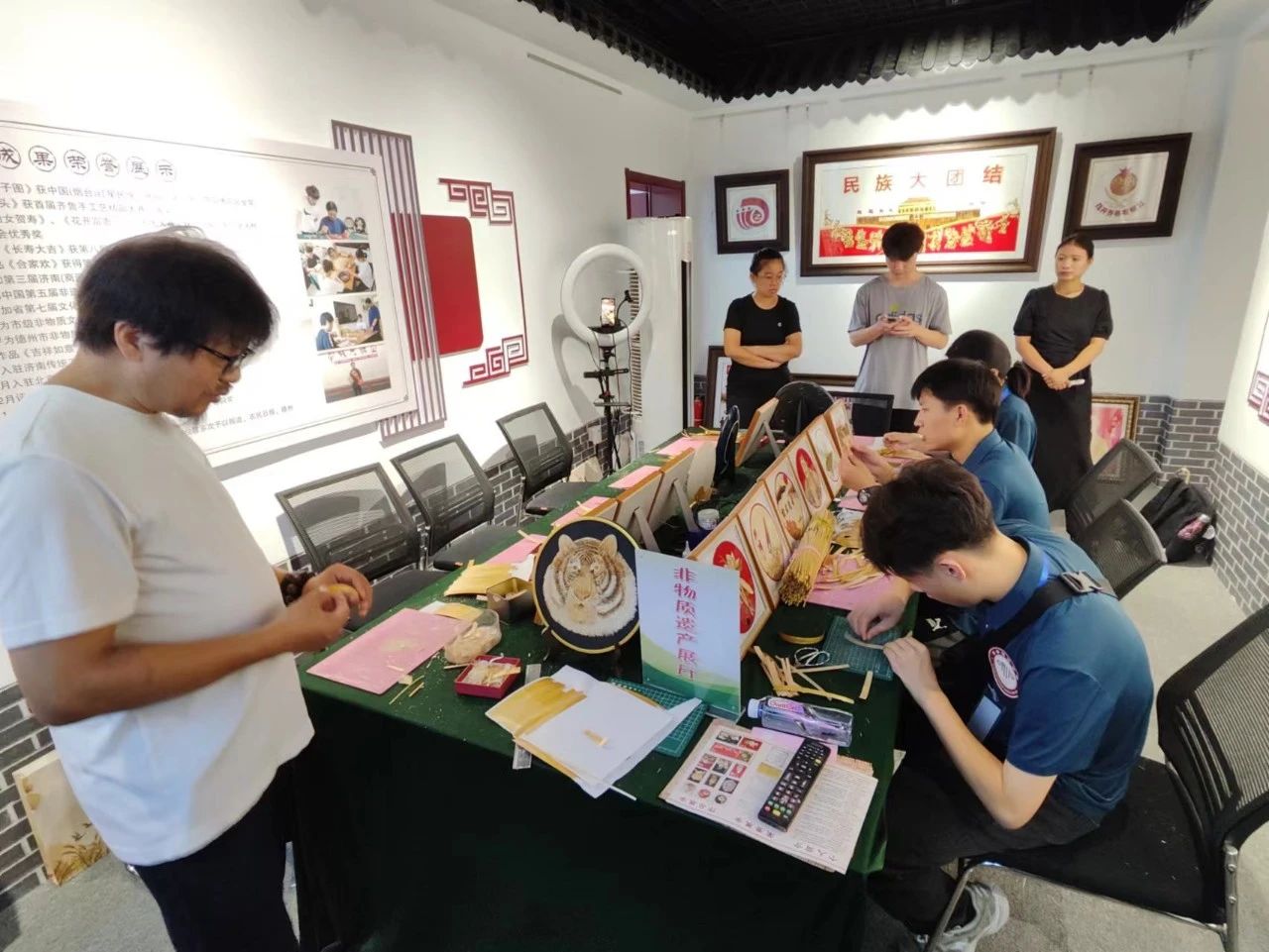 實踐隊躬身以行,親自參與到了麥稈畫制作過程中,體驗了從選材到成品的每一個環(huán)節(jié)。在學習麥稈畫制作工藝時,不僅學習了基本的制作技巧,還深入了解了不同圖案所蘊含的文化寓意和社會價值。這種沉浸式的學習方式極大地激發(fā)了實踐隊成員對于非物質文化遺產保護與傳承的熱情,深刻認識到非物質文化遺產不僅僅是技藝本身,更是承載著一個地區(qū)乃至一個民族的歷史記憶和文化認同。