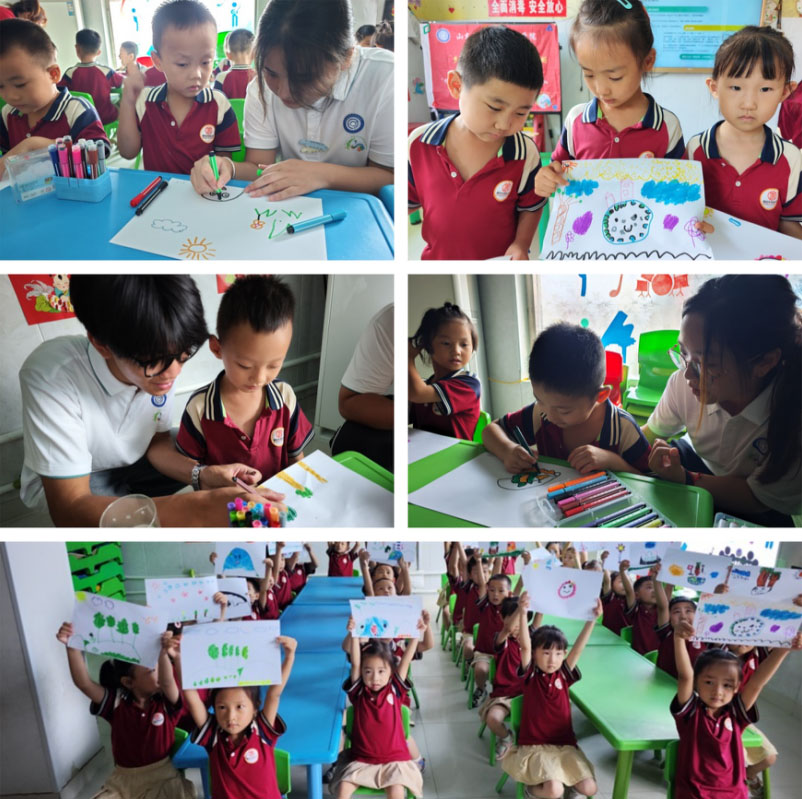 在環(huán)保美術(shù)課堂上,志愿服務(wù)隊(duì)的成員們通過引導(dǎo)孩子們運(yùn)用五彩斑斕的畫筆,將他們對(duì)綠色地球的憧憬描繪在紙上。從藍(lán)天白云到青山綠水,從清新空氣到潔凈街道,孩子們用畫筆描繪出了自己心目中的環(huán)保世界。不僅培養(yǎng)了孩子們的藝術(shù)素養(yǎng),更激發(fā)了他們對(duì)環(huán)保的關(guān)注和熱愛。在這一過程中,志愿者們不僅是指導(dǎo)者,更是環(huán)保理念的傳播者,通過一幅幅充滿童真的畫作,在孩子們心中播下了環(huán)境保護(hù)的種子。